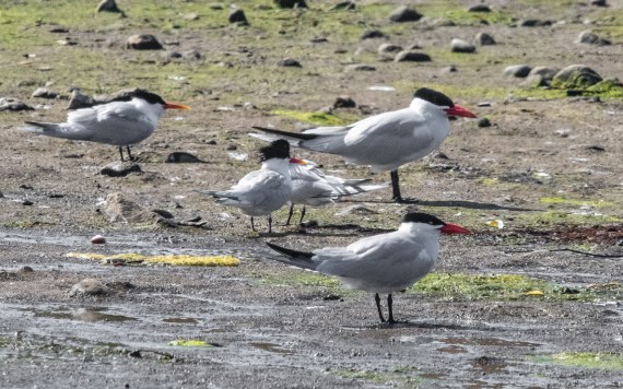 Most of the gulls have left, and the tern population dropped significantly as well. The Double-crested Cormorants were sitting on the stones in the lagoon, the Pelagic Cormorants were swimming in the near-surf zone, and the 50 Brandt’s Cormorants were a fly-by flock.