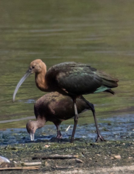The three birds above—Pectoral Sandpiper, White-faced Ibis and Red Knot—are good examples of this situation, as is the Horned Grebe farther up. Chris Tosdevin who lives not very far from the lagoon is able to drop by there more often that me. (Weekday driving can take me 3 hours each way, whereas on Sunday morning it’s 35-40 minutes. That’s L.A. driving for you.) Thus he was able to photograph these four birds earlier in the week, but by Sunday morning, they had flown the coup (so to speak). These four species are all on my lagoon list from prior visits. But not for today. Alas.