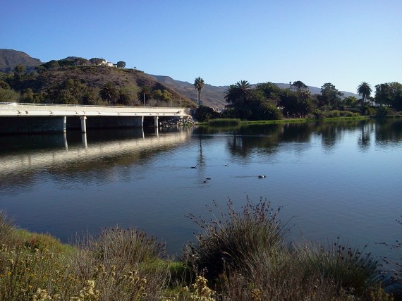 PCH bridge over a calm, algae-free lagoon (Lillian Johnson 10/23/22)