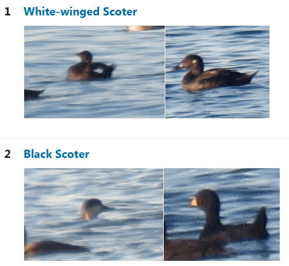 As 99% of scoters will be Surf, what you’re really doing is scanning for those that aren’t. Learn their field marks ahead of time and/or carry a field guide.