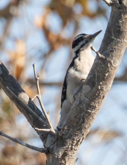 I keep getting reports of a Hairy Woodpecker hanging out in the trees around the parking lot and paralleling PCH, and I keep missing the bird. Femi Faminu has some sort of weird affinity to woodpeckers and was always hearing and seeing them at the lagoon, so most of their appearances in my list for the last two years are due to her. However, Chris & Ruth Tosdevin were here a few days earlier spotting the American Golden Plover (see report), a new bird for the lagoon, and got a photo of the woodpecker.