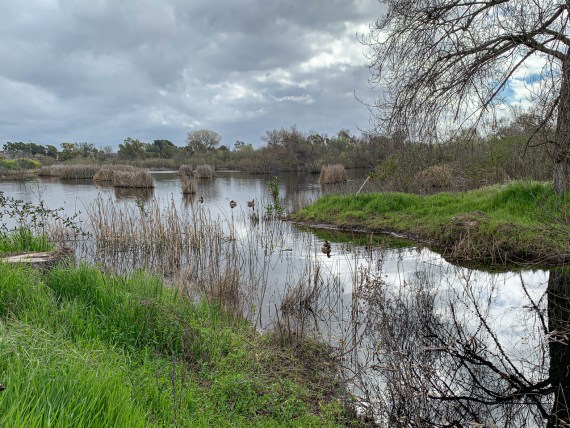 Although many of our members regularly visit Madrona Marsh Preserve in nearby Torrance, the last time we were there as a group was in December, 2016, way way back in the Before Times. It was nice to see it again with so much vegetation. As our visit was brilliantly **timed months in advance to fall between a gigantic atmospheric river and the winter-storm-of-the-century-so-far, we saw lots of water and ducks, but had a fine, dry day in the field. The numerous paths are crushed granite (or something similar) and are raised an inch or so, so none of us got wet or vanished into a sinkhole.