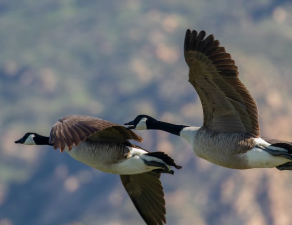 Canada Geese, perhaps heading north, honking as they go