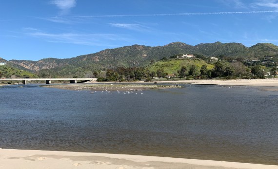 Malibu Lagoon south channel, the red roofs of Pepperdine University in the far distance left. (Ray Juncosa 3/26/23)