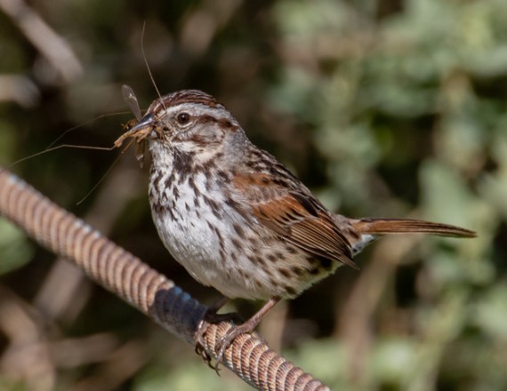 Song Sparrow & a very leggy insect. (Chris Tosdevin, 3/26/23)