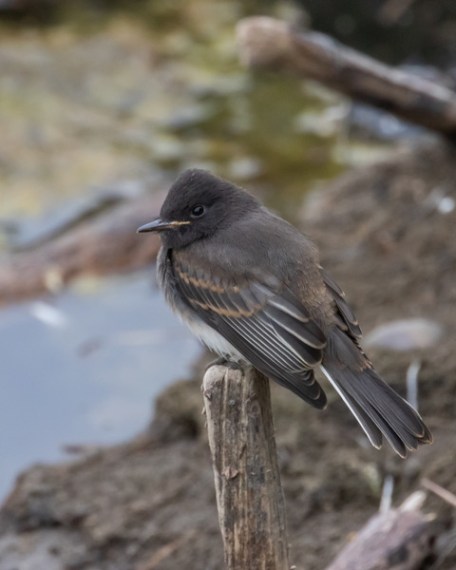 It may look like a weird Red-winged Blackbird, but it’s a juvenile Black Phoebe. (Chris Tosdevin 5/28/23)