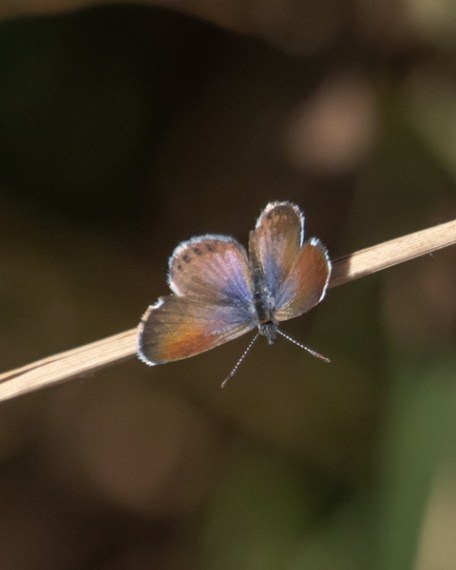 I don’t know how Chris Tosdevin finds these butterflies, which at 1/2-3/4″ inch, wing-tip to wing-tip, are the world’s smallest butterfly. [The largest moth is the Atlas Moth of SE Asia, with a 10″ wingspan.] Their range is fairly extensive and includes the lagoon. I put one of his older Pygmy Blue photos into this month’s trip announcement; perhaps he saw it and felt it needed a companion.