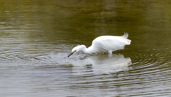 Finally, we have a Snowy Egret stirring up the waters, trying to arouse some curiosity among the fish.
