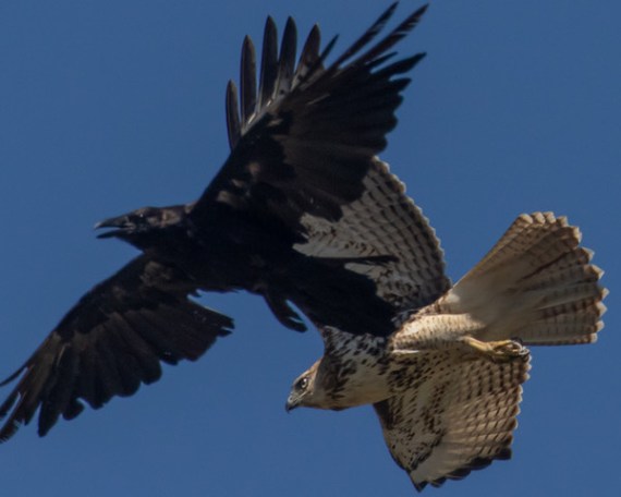 Northern Raven and juvenile Red-tailed Hawk (Chris Tosdevin 8/27/23)
