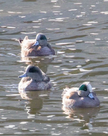 We birded our way through the trees, finding a lot of Yellow-rumped Warblers, then went to the river through one of the many gaps in the fence. Here we found a nice assortment of ducks and two geese, along with a lot of Black-necked Stilts, herons and egrets and a few passerines in the trash-laden river islets.