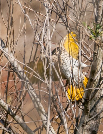 Northern “Yellow-shafted” Flicker, same bird, same tree (Chris Tosdevin 2-10-24)