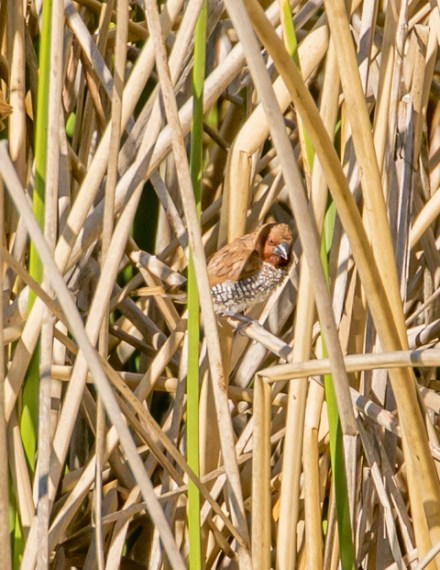 A male Scaly-breasted Munia hiding in the reeds (Chris Tosdevin 2-10-24)