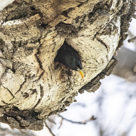 Why don’t birders like it? They’re highly social, quite aggressive and use their sharp pointed bills and shear numbers and persistence to drive native birds from nesting cavities. Combine that with deforestation and our tendency to cut down dead limbs and trees lest they fall down and crush our cars, thereby removing many potential nest holes, and it’s part of the reason many of our native species have declined up to 95%. But…when these starlings are covered with fresh fall stars they are – as the Aussies say – quite a “specky bird.”