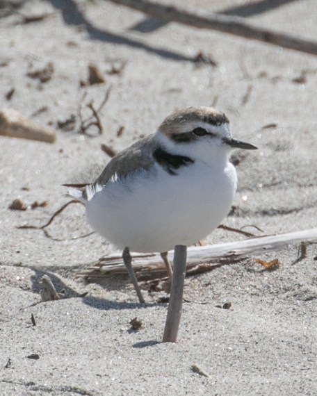 Technically (I suppose) they’re still Snowy Plovers, but out here on the west end of the world near where the ocean plunges into the great abyss we prefer Western Snowy Plovers to distinguish them from the inland sort who nest in places like Utah, Texas and Kansas, before retiring for the winter to the balmy shores of the Gulf of Mexico. Our Western SP’s breed right here on our western beaches and winter here as well. There is a possibility (a good one, I think) they are actually sufficiently geographically separated from the inland version to be considered a separate species, I have read that the western & inland forms neither visit each other’s breeding areas or wintering areas. If they don’t share breeding areas or wintering areas and don’t interbreed, that’s allopatry (physical isolation from similar species) as far as I can see. But that’s not yet settled science either way, as far as I know.