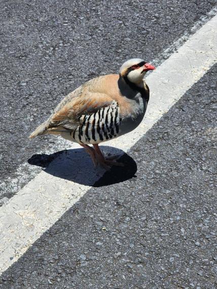 #18. Chukar in Maui, Hawaii; introduced to U.S. from Asia (Grace Murayama’s daughter), apparently stopping to contemplate just exactly why the chicken did cross the road.