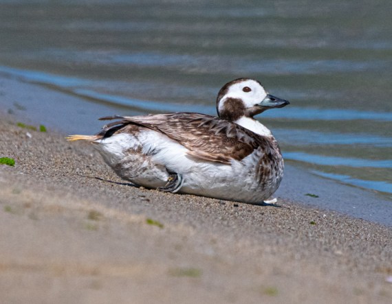 Long-tailed Duck is the only species in the genus Clangula, *from the Greek klange for “a noise or sound.” It’s prior official English name, Oldsquaw, also referred to its noisy call, apparently reminiscent of an angry old woman to many human ears. Most of its many other colloquial names also refer to its call: cockawee, coal, candlelight, old injun, old wife, noisy duck, hound, long-tailed hareld, swallow-tailed duck, south-southerly, south southerland, old granny, old molly, old Billy, John Connally, Uncle Huldy, my Aunt Huldy, cowhen, calaw, calloo, scoldenore, scolder, quandy. [Such a cacophony of common names is not uncommon, and the assortment above is a good example of why birders & ornithologists decided to standardize the English names of birds.] The Cree called it Hah-ha-way. By any name it’s a treat to see.