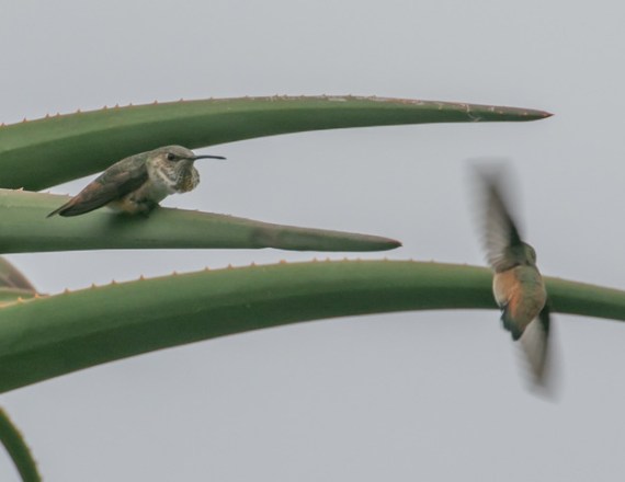 #7. Allen’s Hummingbirds, both are rusty on flanks and/or tail (Chris Tosdevin 5-26-24)