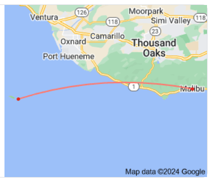According to the National Park Service, “The only breeding colonies of California brown pelicans in the western United States are within Channel Islands National Park on West Anacapa and Santa Barbara islands.” Anacapa Is. is 40.5 miles due west of Malibu Beach; Santa Barbara Is. is 43.6 miles SSW of Malibu. According to Audubon Society Encyclopedia of North American Birds they’ve been recorded at flying at 14-22 mph in California, 26 in Florida, and 35 somewhere else. They typically fly very low over the water, often in the troughs between the waves, in single file, gaining gliding distance from the bird in front and “ground effect” uplift from the water just below their wings. It would take them 75-130 minutes to fly from either island to reach Malibu Lagoon, which has now been revealed as a conveniently located rest stop for all nesting west coast Brown Pelicans.
