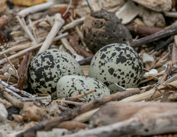 Killdeer eggs 1.06 x 1.41″ are smaller than they look here (Chris Tosdevin 5-26-24)