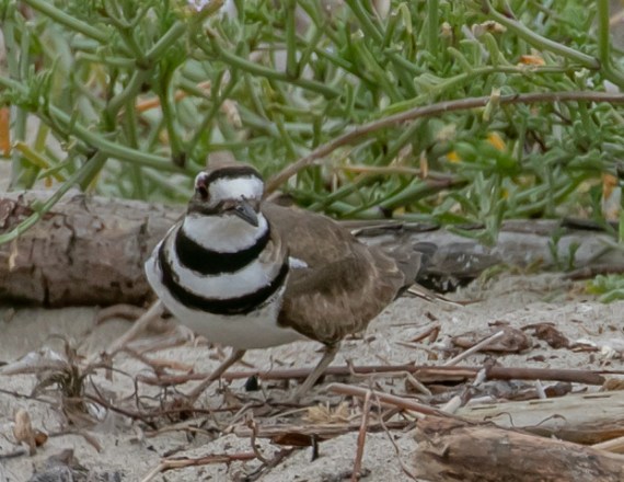 The Killdeer today were quite obvious as they walked and ran and faked a broken wing through the wrack on the beach. I thought they might have hatched young out staggering around through the sticks and logs — they look like fluffy ping pong balls on stilts when very young — but couldn’t find any. Chris Tosdevin watched longer and discovered their nest.
