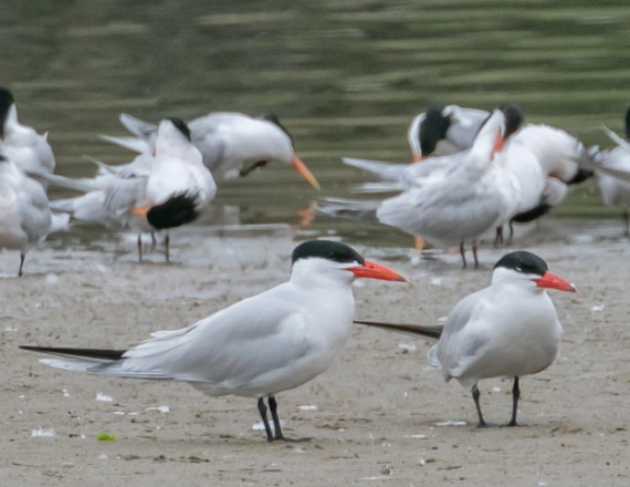 Caspian Terns, backed by Elegant Terns (Chris Tosdevin 5-26-24)