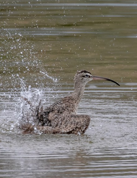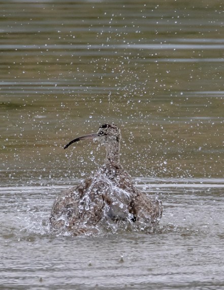 Sandpipers were conspicuous by their absence: the only species was Whimbrel with two representatives. One of them apparently needed serious plumage cleaning, and splashed up a storm near the lagoon edge.