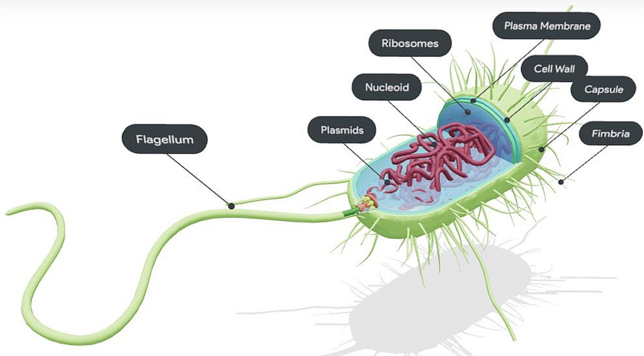Typical bacteria, a prokaryote. Source: Visible Body, where it rotates in 3-D.