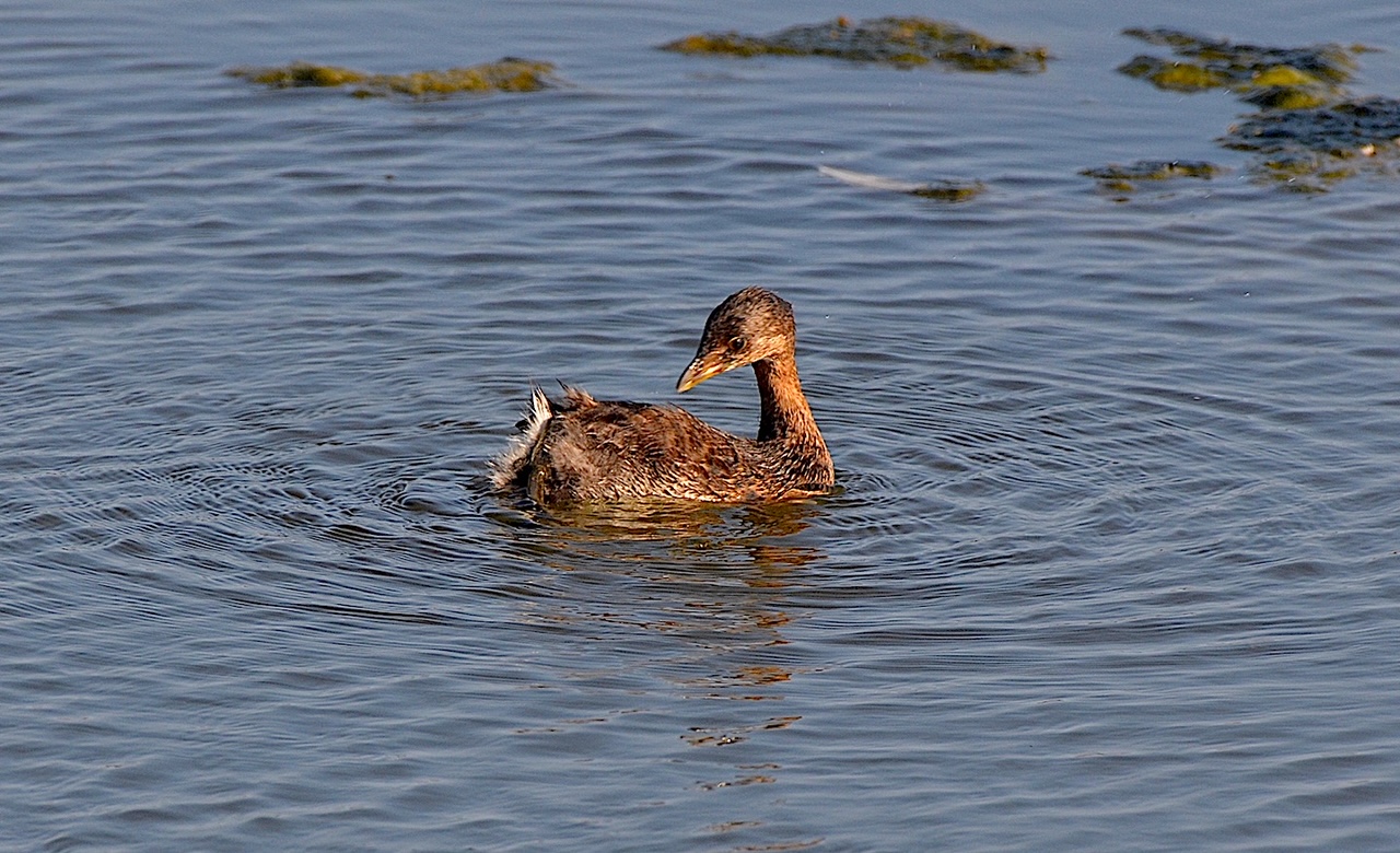 This Pied-billed Grebe’s bill is not at all pied and it seems to have a wicked-looking thorny tip.