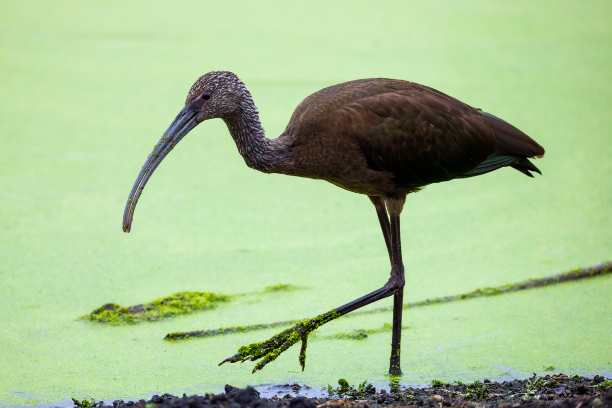 #6. White-faced Ibis has algae or duckweed on its foot and no white on the face. (Elyse Jankowski 10-12-24)