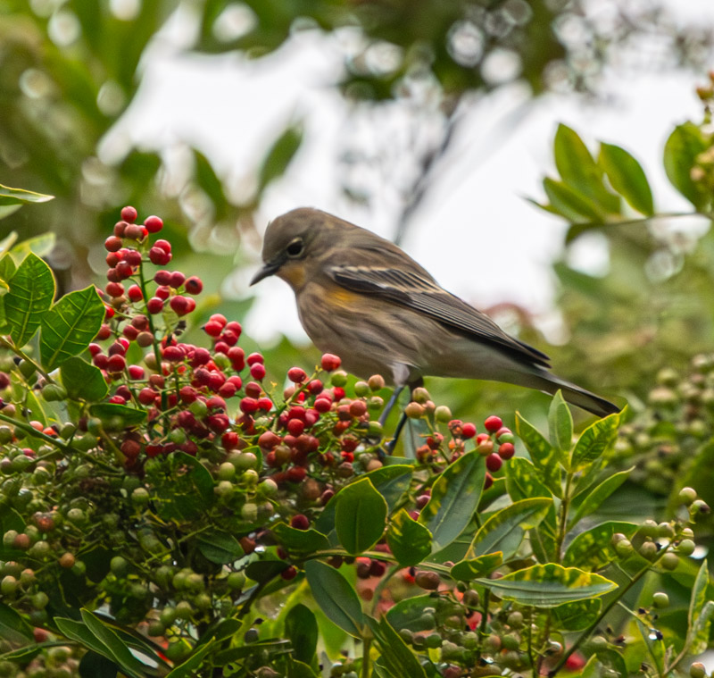 #21. Yellow-rumped Warbler (Ray Juncosa 10-12-24) western auduboni form has broken eye-ring, eastern coronata has white line (supercilium) above eye.