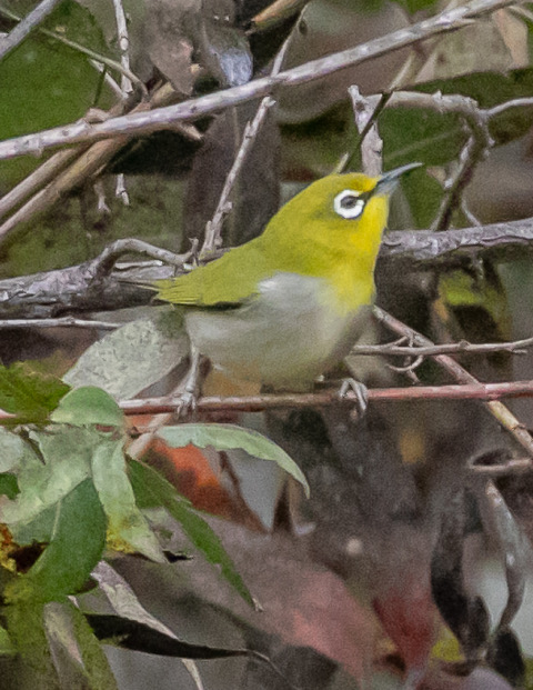 #16. Swinhoe’s White-eye Zosterops simplex (Chris Tosdevin 10-12-24), was formerly considered a subspecies of Japanese White-eye Zosterops japonicus, widespread across east Asia and Indonesia. Elevated to full species status in 2018, and “Japanese White-eye” was changed to Warbling White-eye. Thelatter bird is widely pictured in Japanese art. As a whole, the white-eye family is naturally widespread, ranging from southern Africa to east Asia. As cage birds, they are found world wide, sometimes escaping and becoming locally established as in this park.