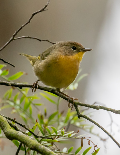 #18. Common Yellowthroat female (Chris Tosdevin 10-12-24). The pattern of yellow throat bordered by brown replicates the male pattern where the black mask replaces the brown. See the male above, not in the quiz but in the 7th picture from the top.