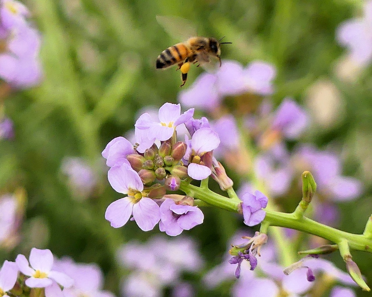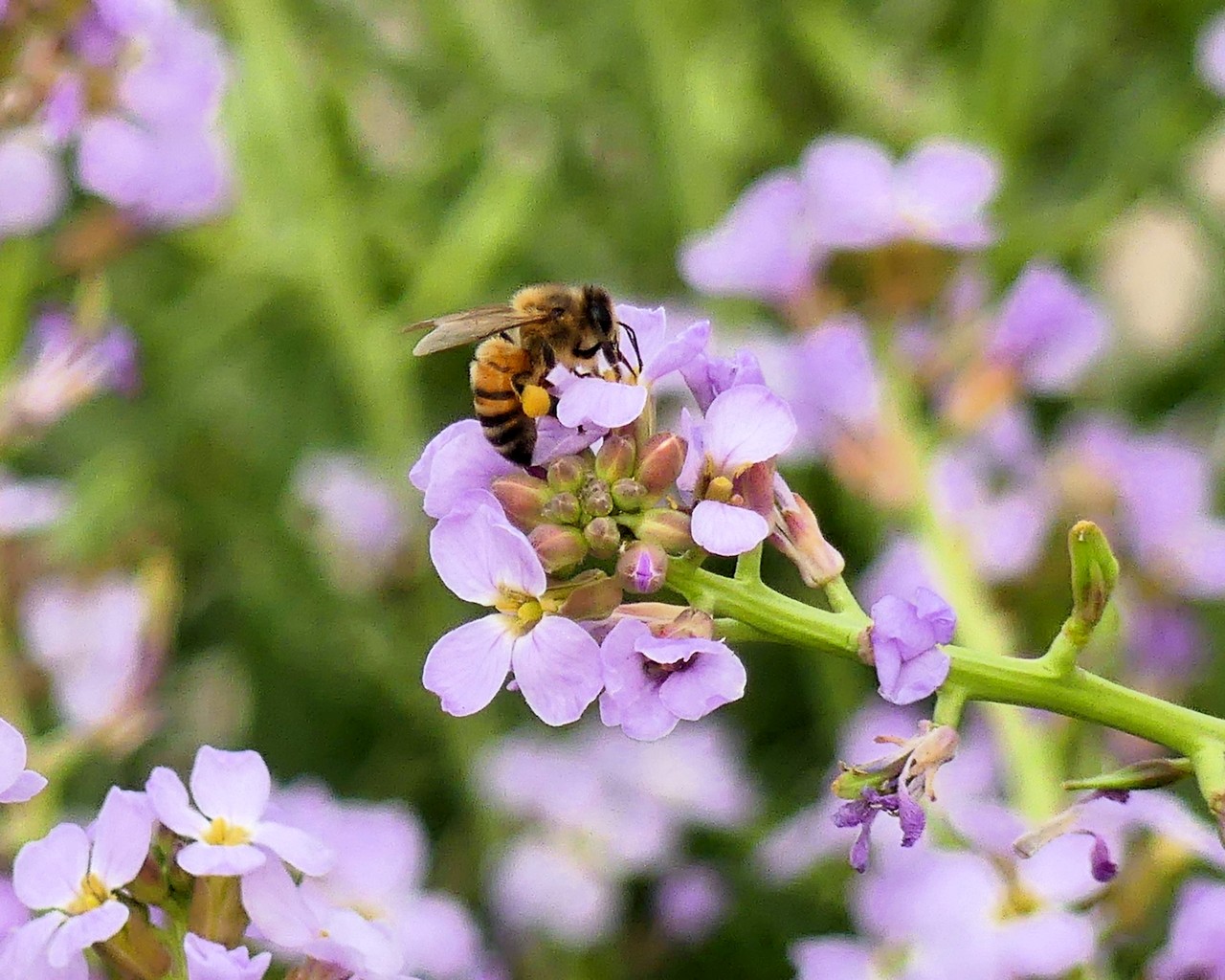 As noted above, the Sea Rocket was blooming all around the lagoon. This bee closely inspected the blossoms and was duly rewarded, as you can tell by the bulging food sacs on its hind legs.