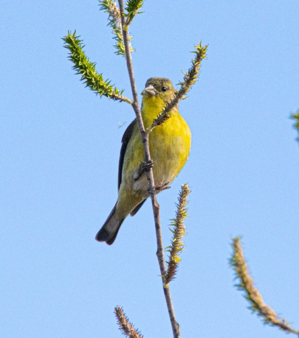 Perhaps most noteworthy were the numerous goldfinches – both Lesser and American. We couldn’t find any Lawrence’s or the once-upon-a-time European Goldfinch that lived here. Goldfinches were in the trees, the brush, the grass, on the bare ground.
