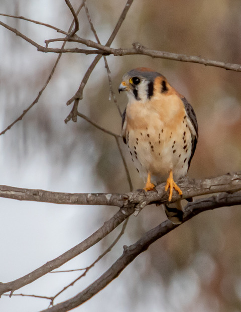We had four species of raptors: the Red-tailed Hawk was high overhead and far away, the Merlin was far away and seen only through a lattice of branches, but the American Kestrel was cooperative as were a pair of Cooper’s Hawks.