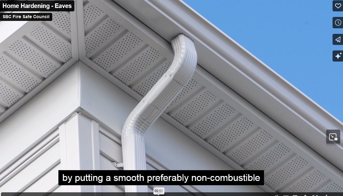 1. Replace your Soffits. These allow air into your attic or crawl space under the house. They also allow embers to pass through. Visit this SBC Fire Safe Council website and short film. SBC Fire Safe Council [LINK]