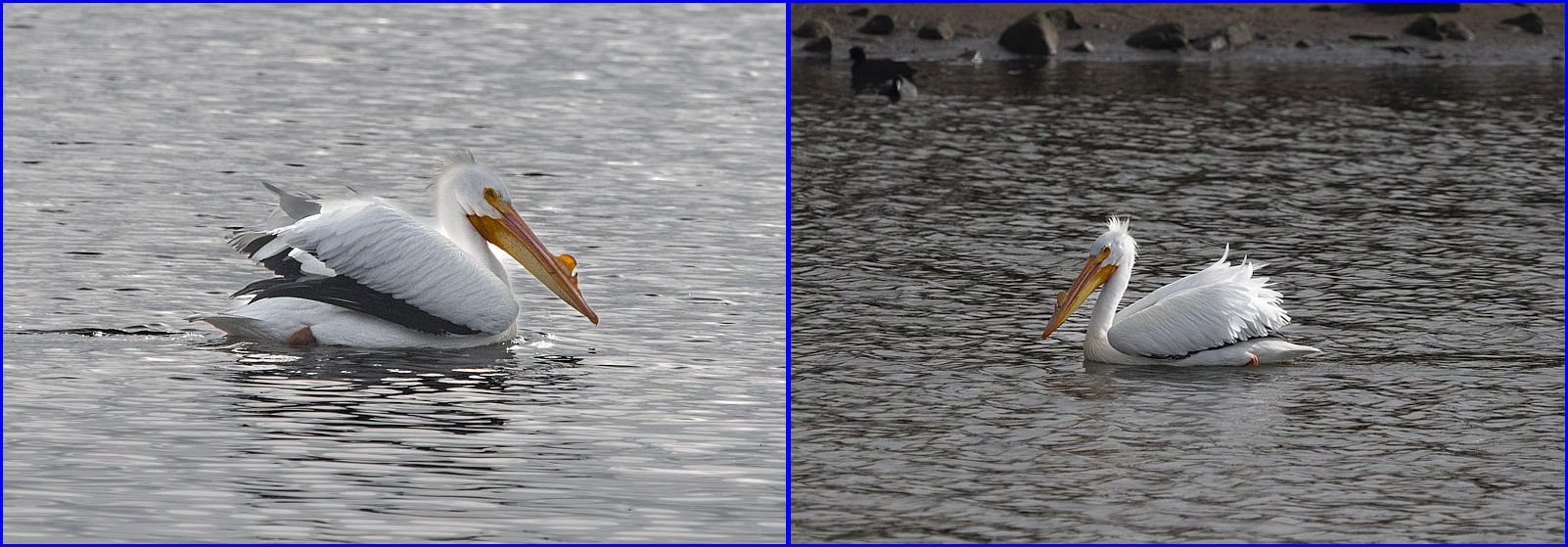 White Pelicans grow their bill knob for breeding season. It falls off after the eggs are laid.