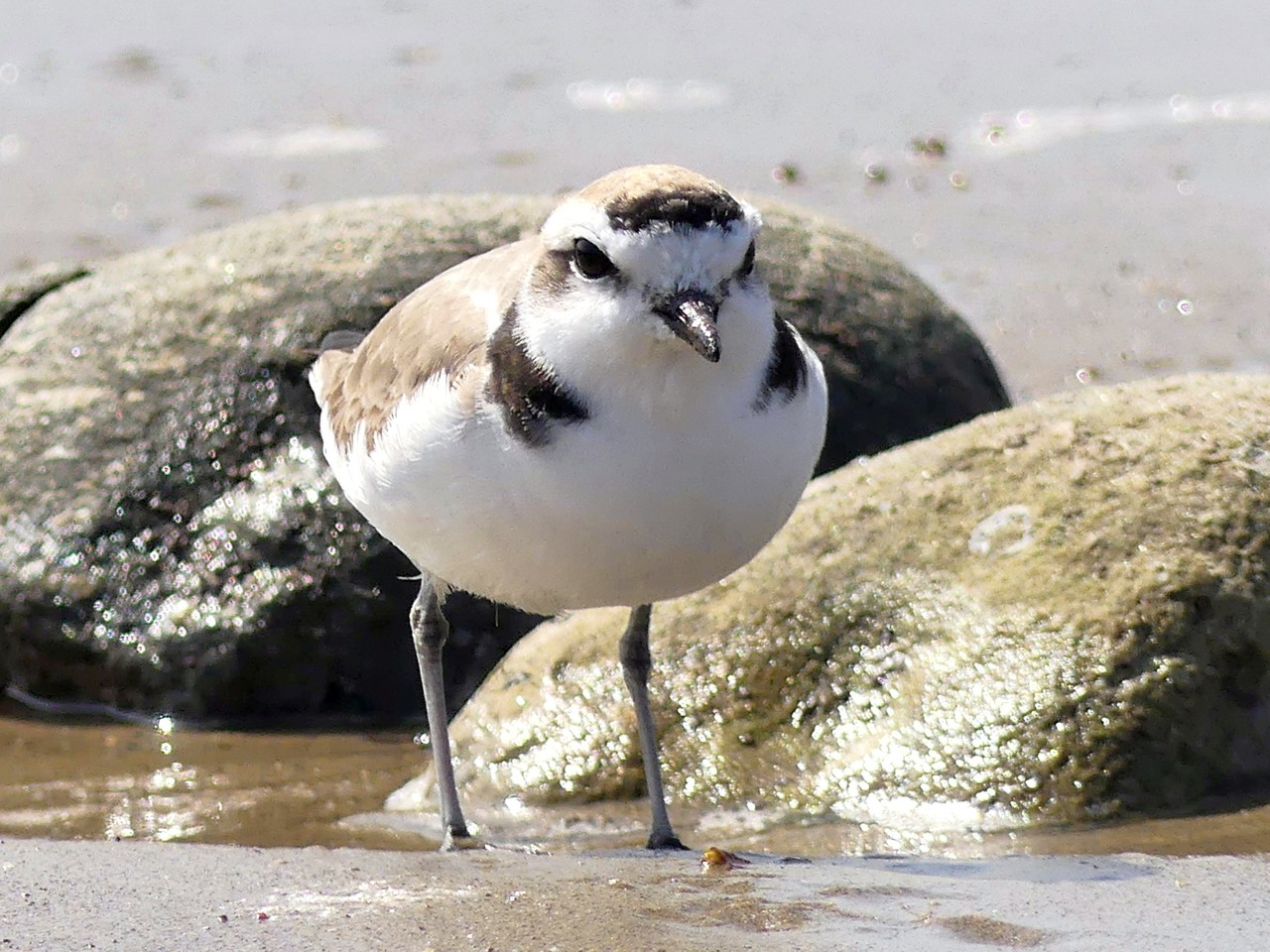 We found a few peeps down by the rocks exposed by the retreating tide. One of them was a little larger than the others.