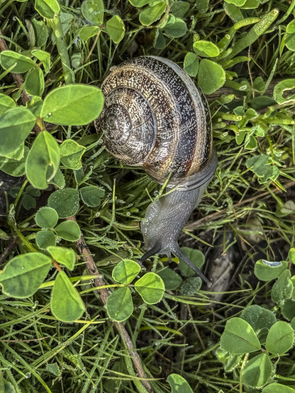 Sometime during the course of the morning, Ray contemplated the elements of French cuisine which were crawling around in the vegetation at his feet. I’d seen these creatures over by the PCH bridge, but resisted any urge to pick one up and eat it, as they look too crunchy to me. As they say: There’s no accounting for taste. Or very little, at any rate.