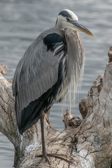 It was actually easy to miss this 4-foot-tall bird standing on a log, it blended in so well, gray on gray.