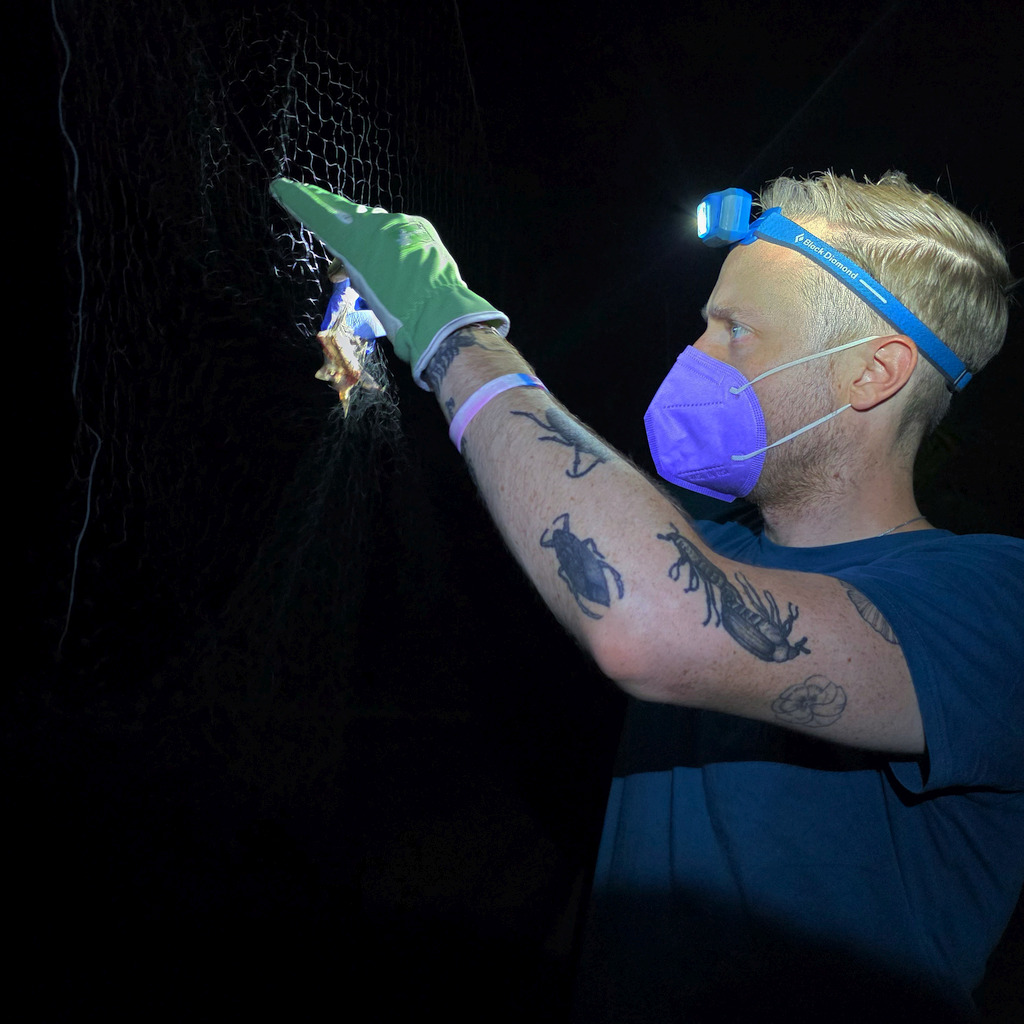 Joseph Curti, Ph.D. is a postdoctoral research fellow at the UCLA La Kretz Center for California Conservation Science. Joey’s current research focuses on the impacts of anthropogenic stressors on bat community composition in urban areas across California. Joey received his Ph.D. in 2024 from the UCLA Ecology and Evolutionary Biology department, where he worked with statewide resource managers on a variety of conservation genomics projects. These included a project aimed at evaluating the impact of roadways in Los Angeles to California quail (Callipepla californica) gene flow and rangewide landscape genomics of the Yuma Myotis bat (Myotis yumanensis). Joey has been working with bats since 2015 and has worked on a variety of projects including radio tracking Big Brown Bats (Eptesicus fuscus) in the California Central Valley, mist netting and acoustic surveys of bats on the California Channel Islands, and acoustic surveys of bats for the Santa Monica Mountains National Recreation Area. Outside of his academic research, Joey regularly leads acoustic bat walks and classes on bat ecology and natural history for groups across Los Angeles, including Theodore Payne Foundation, the LA Natural History Museum, the Ojai Valley Land Conservancy, the Resource Conservation District of the Santa Monica Mountains, and the San Fernando Valley Audubon Society. For more information and to stay up-to-date on his most recent publications and research, please visit his website at www.josephcurti.com.