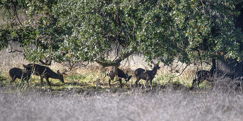 Looking over to the west of the meadow gave us 3 Western Bluebirds. Then looking back to the Juncos we saw that some House Finches and one Purple Finch had joined them along with a White-throated Sparrow with a strongly outlined throat (it has been seen previously this fall at Malibu Creek).