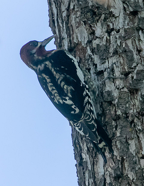 Walking back towards the meadow, the Downy Woodpecker was seen crawling up trunk of a tree and then 6 Nanday Parakeets flew overhead. Heading into the forest north of the meadow, the Wrentit trilled while we carefully looked at some Kingbirds and determined they were Cassin’s. As we looked behind us, there was the lovely site of a flock of about 60 Rock Pigeons. Spotted Towhees were in the bushes with a White-breasted Nuthatch working a tree and at last a Red-breasted Sapsucker was found.