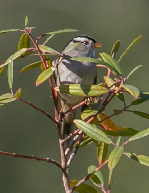 In the grass we found a Golden-crowned Sparrow, which we see far less often than the abundant White-crowned Sparrows. This made it a three-Zonotrichia day, an uncommon event.