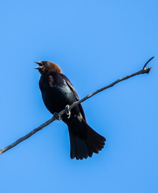 And to finish the Icterid trifecta, here’s a male Brown-headed Cowbird (nee Buffalo-bird) living up to it’s name. [Actually a single twig-top Western Meadowlark towards the sun was a fourth icterid, but no photo could be taken.] The Cowbird’s song is like gurgling water, quite nice and unexpected when you’re lucky enough to hear it clearly.