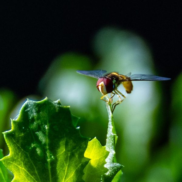 Among the many bird photos photographer Elyse Jankowski sent me was the one below, which I confidently and immediately recognized as a flying insect. And that’s as close as I could narrow it down. Elyse thought it looked like a hoverfly, which I ought to be able to recognize as they are all over the flowers in our front yard, along with the solitary bees, but I can’t. I uploaded the photo to Insect Identifier (one free ID per day) which in 2 seconds claimed Episyrphus balteatus, or Marmalade Hoverfly. Wikipedia said this is “a relatively small hoverfly (9–12 mm) of the Syrphidae family, widespread throughout the Palaearctic region, which covers Europe, North Asia, and North Africa. It is considered the most abundant native hoverfly in Central Europe.” That didn’t sound right for SoCal, but some additional investigation revealed that it’s been introduced locally as a consumer of agricultural and garden pests (Aphids, Caterpillars, Leafhoppers, Planthoppers, Mealy Bugs, Thrips) and they are sold commercially. I don’t know if they come in cans, boxes or plastic bags. Cornell University has a long and interesting page on them. Note the big purple compound eyes. We could use a couple of them in our front yard as aphids keep sucking our milkweed plants dry.