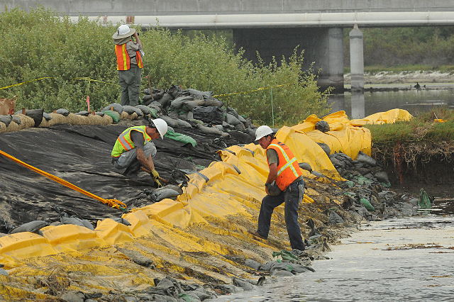 Berm & yellow turbidity curtain near PCH (J. Kenney 6/21/12)