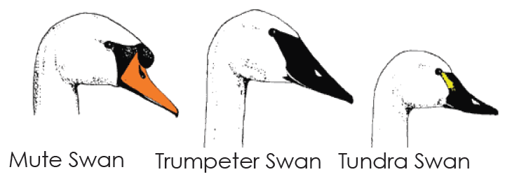 Trumpeter and two Tundra Swans – heads – Photographer Unknown Swan Paradise.com