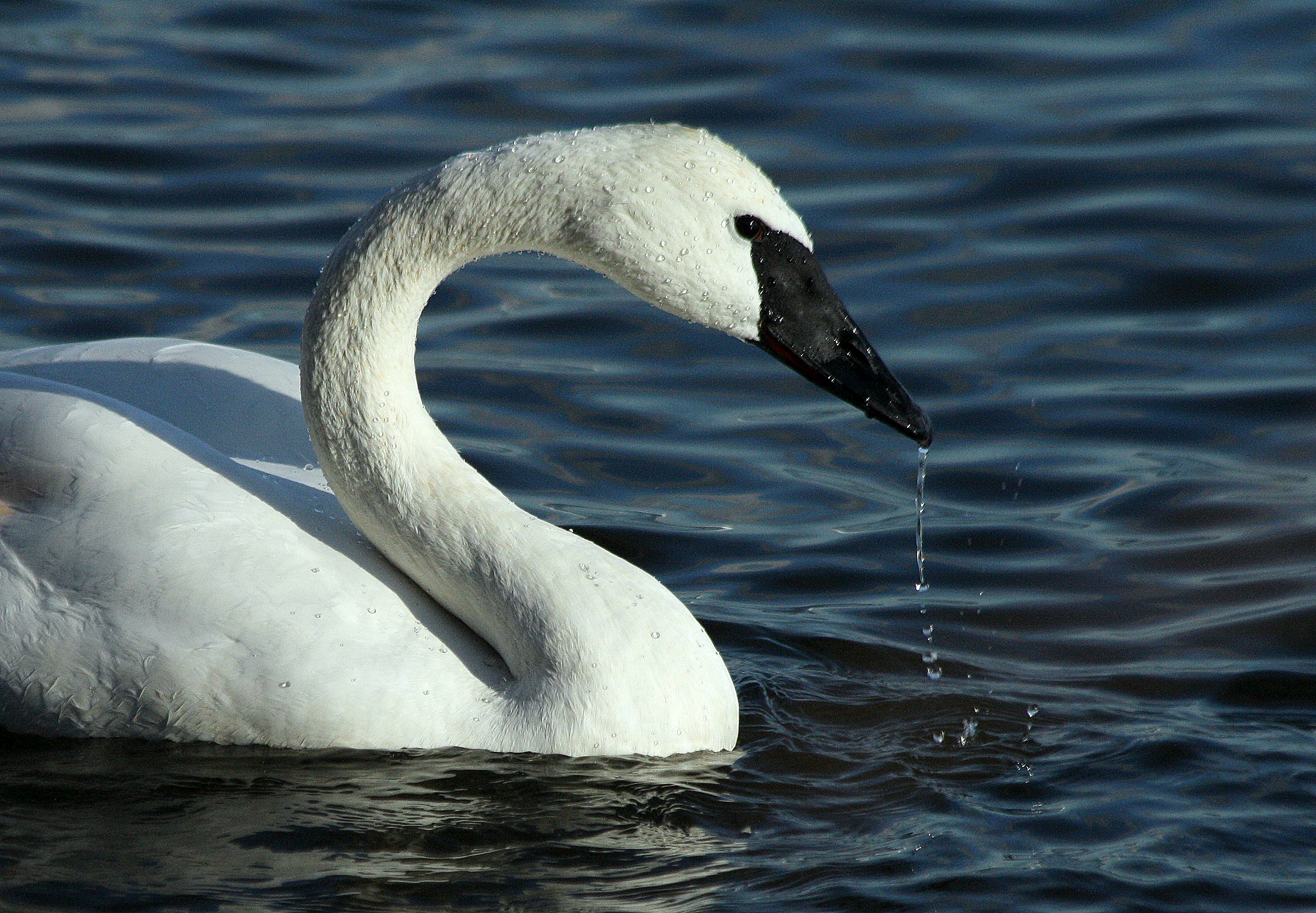 There are truly seven swan species in the world. and a-swimming they all go. Of the seven, only Trumpeter and Tundra Swans are native to North America. Tundra Swans are regular winter visitors to Klamath and Tule Lake refuges on the Oregon-California border, as are a few Trumpeters and, very occasionally, a Whooper or Bewick’s (Eurasian race of the Tundra) appear. A small number of Tundra winter in the Sacramento Valley refuges, especially near Colusa. Tundra Swan is an occasional winter visitor to SoCal, but there are only a few SoCal records for Trumpeter. A few winters ago, when several Tundra Swans spent a few weeks at a small pond near the Antelope Valley Poppy Preserve, many L.A. birders drove out to see them. In general, swans form pair bonds at age 2 – 4, begin nesting at age 4 – 5, mate for life but will remate if the partner dies, and live for 15 – 30 years.
