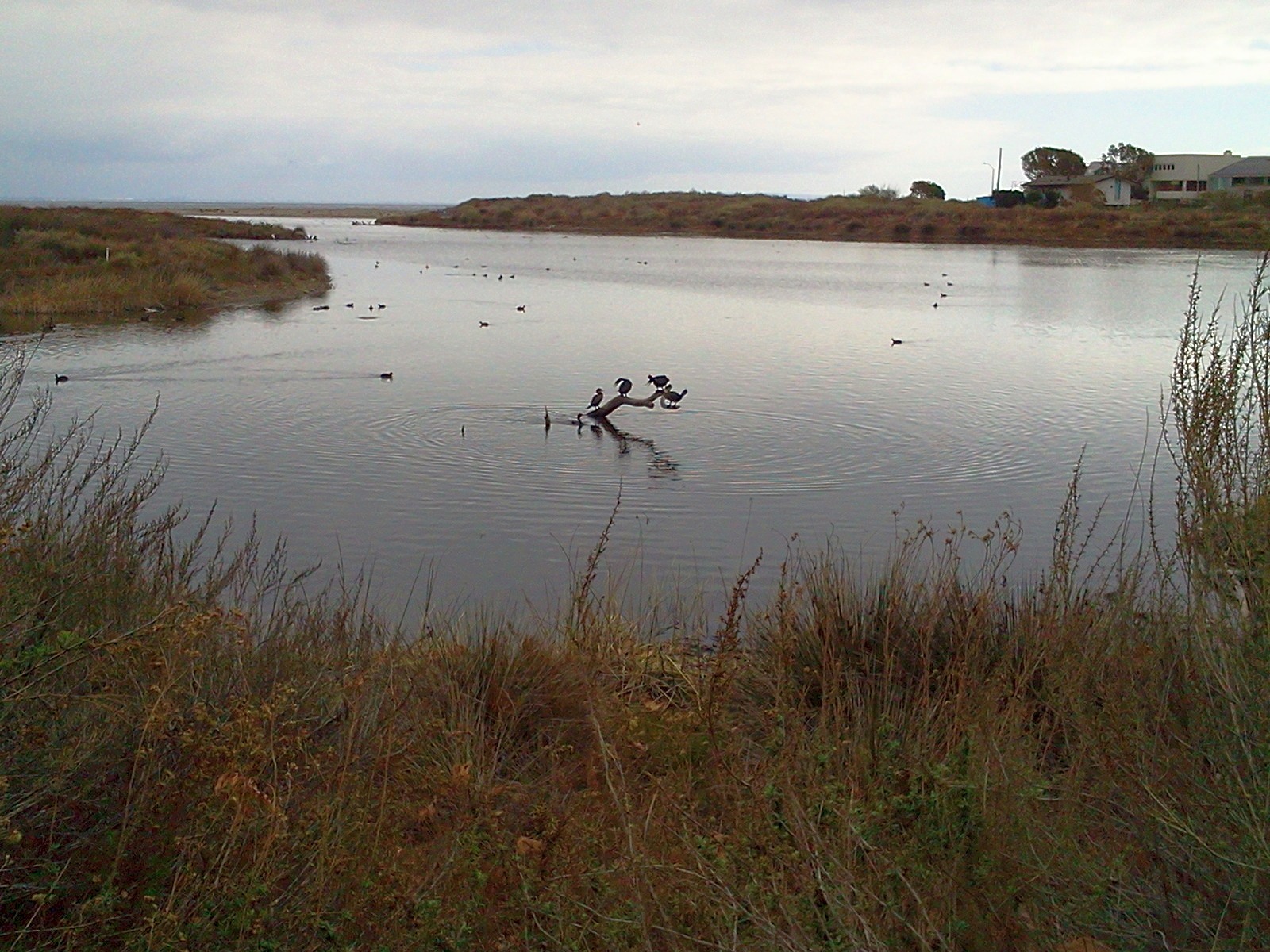 There was far, far less water than last year, not at all surprising considering the rain we have not received. I’d estimate that vernal pool surface was 75% less, seeing as several large previous-pools were – at best – perhaps slightly soft, perhaps. Oddly enough this had virtually no effect upon the number of waterfowl species or individuals — they just occupied a smaller area. This led to occasional bickering, nothing new for commonly quarrelsome ducks and geese.